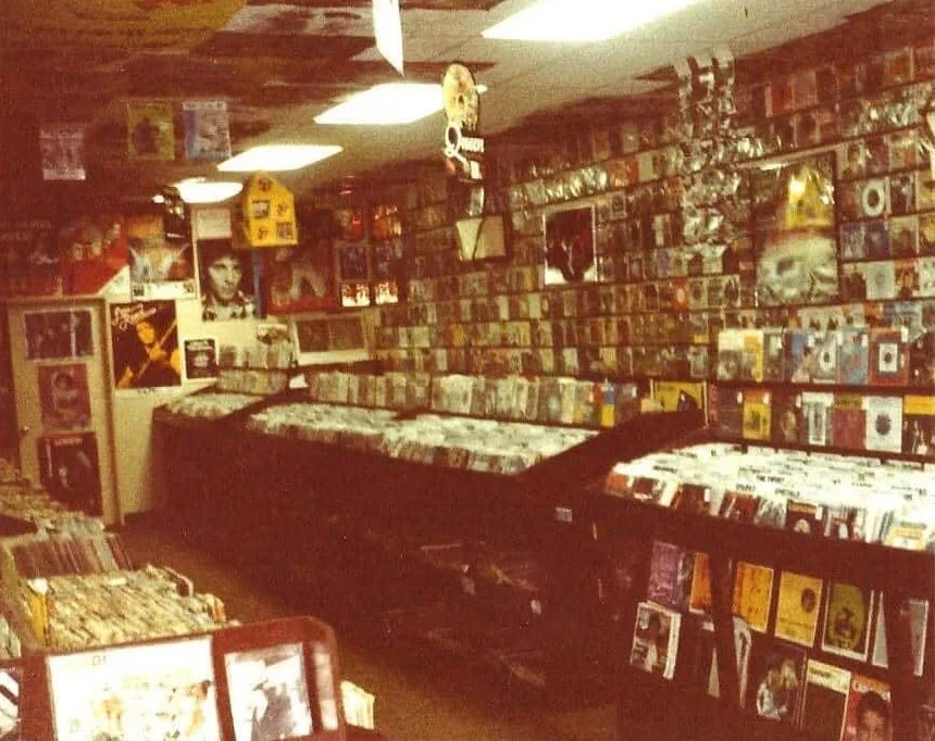 A rare photo of the very first T Aron’s Records location before they moved a block east on Melrose to the larger spot most folks remember from the 80s. The cover of Frank Zappa’s “Apostrophe (‘)” can been seen in the window.